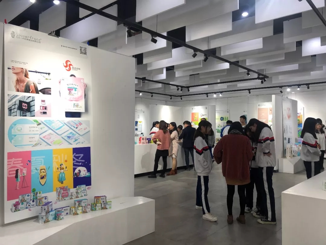 總計600多平米的展廳內(nèi),布置著在水一方眾多經(jīng)典品牌案例及設(shè)計成品,多款嶄新精致的產(chǎn)品引起現(xiàn)場師生的極大興趣和重點關(guān)注。對于較少接觸到完整品牌系統(tǒng)的學(xué)生而言,這也是頗為難得的學(xué)習(xí)機會。