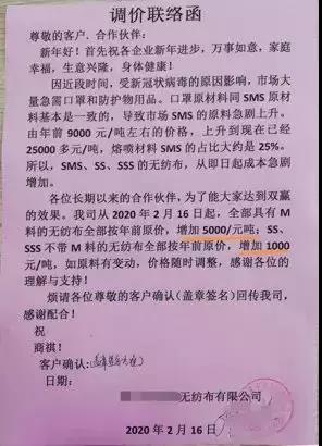 在口罩需求缺口如此大的情況下,無(wú)紡布據(jù)說(shuō)現(xiàn)在是按日?qǐng)?bào)價(jià),“今天的價(jià)格明天已無(wú)效,漲的我們都想不到”。疫情面前,原料供應(yīng)首先傾向抗疫物資,紙尿褲、衛(wèi)生巾等無(wú)紡布供應(yīng)隨之減少,廣東一紙尿褲成品廠家負(fù)責(zé)人透露,“目前,拒水無(wú)紡布已經(jīng)很難拿到貨了,價(jià)格至少上漲6000元/噸,普通無(wú)紡布將上漲2000-3000元/噸”。