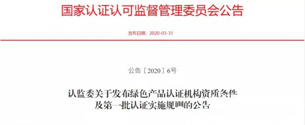 國家認證認可監(jiān)督管理委員會2020年3月31日下發(fā)認監(jiān)委2020年第6號公告,公布了綠色產(chǎn)品認證機構(gòu)資質(zhì)條件及包括紙和紙制品在內(nèi)的第一批認證實施規(guī)則。符合《中華人民共和國認證認可條例》、《認證機構(gòu)管理辦法》規(guī)定的基本條件,并具備與從事綠色產(chǎn)品認證相適應的技術(shù)能力的機構(gòu),可向認監(jiān)委提出申請,經(jīng)批準后按照《綠色產(chǎn)品認證實施規(guī)則 紙和紙制品》開展綠色產(chǎn)品認證。紙和紙制品綠色產(chǎn)品認證即將全面開展。