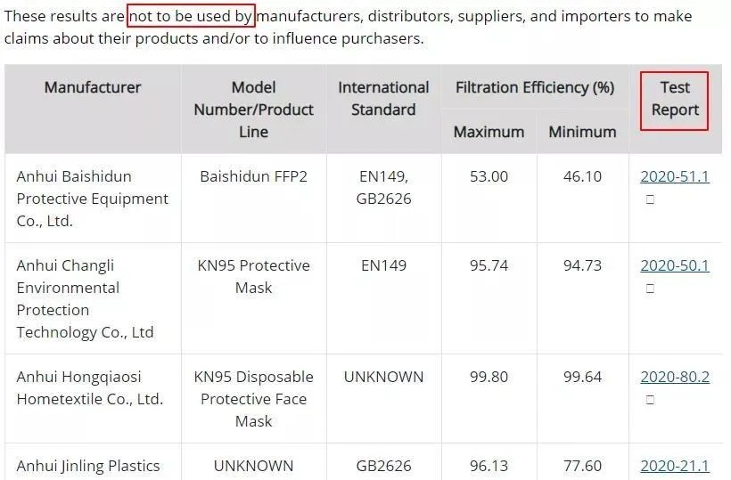 熱點一:CDC列出最新100+中國口罩企業(yè)檢測結果