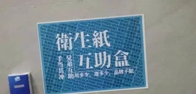 除了互助活動(dòng)本身,話(huà)題度最高的的是兩件事,第一件是中國(guó)政法大學(xué)里男廁外設(shè)立了“衛(wèi)生紙自助盒”,暗示男性自慰也應(yīng)該“去羞恥”。