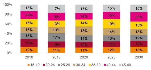 15-49 歲適齡女性人口年齡結(jié)構(gòu)