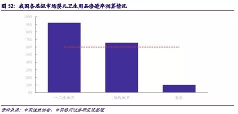 2.三四線城市以及農(nóng)村市場(chǎng)滲透率的提升。根據(jù)現(xiàn)有數(shù)據(jù)測(cè)算,各地的嬰兒衛(wèi)生用品滲透率存在明顯差異,三四線等中低消費(fèi)等級(jí)城市與農(nóng)村地區(qū)嬰兒紙尿褲的滲透率仍然有待提升,由此可以帶來(lái)整體消費(fèi)量的提升空間。