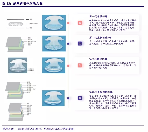 3.隨著技術(shù)、工藝和制造能力的提升,國(guó)牌品質(zhì)不輸海外,性?xún)r(jià)比優(yōu)勢(shì)凸顯。經(jīng)過(guò)多年的技術(shù)研發(fā)及制造積淀,國(guó)產(chǎn)品牌的質(zhì)量控制及穩(wěn)定性都大幅提升,同時(shí)性?xún)r(jià)比進(jìn)一步凸顯。紙尿褲的核心技術(shù)在于芯體,以國(guó)產(chǎn)品牌較為常用的復(fù)合芯體為例,海外品牌由于供應(yīng)鏈、設(shè)備等原因普遍采用以絨毛漿為主要原料的芯體,而復(fù)合芯體技術(shù)的成熟讓國(guó)產(chǎn)紙尿褲進(jìn)一步具備輕薄且吸水后整體膨脹、不易斷層、芯體不起坨等特點(diǎn)。