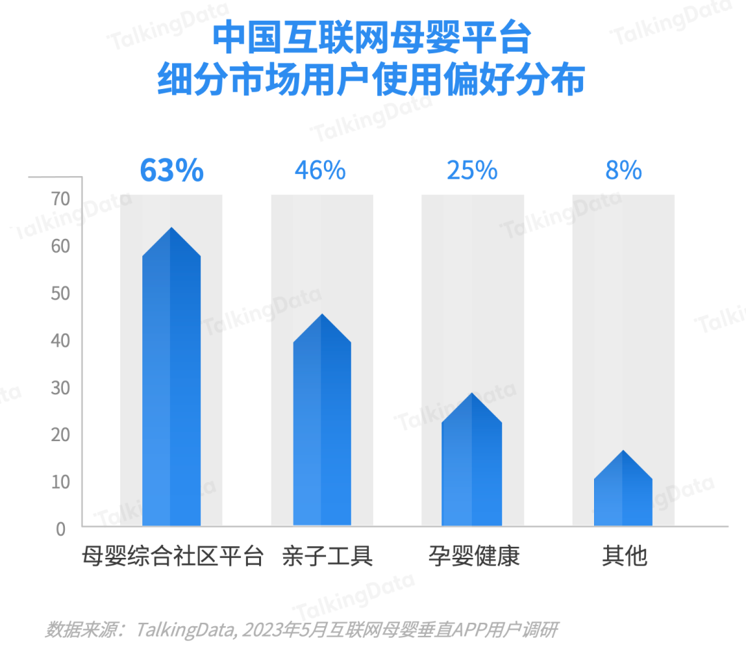 使用母嬰綜合社區(qū)的母嬰平臺(tái)用戶占比更高,達(dá)到63%,這表明用戶更偏愛(ài)涵蓋工具+社區(qū)等復(fù)合型垂直平臺(tái)。