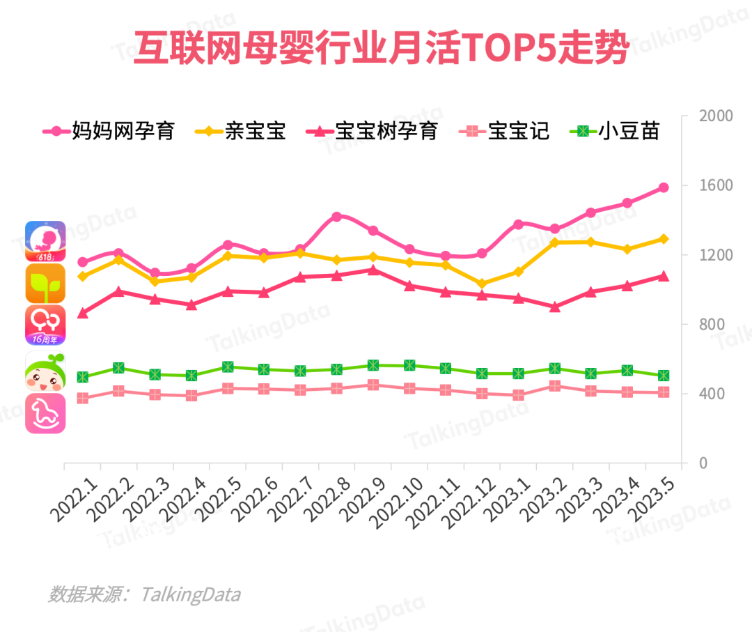在行業(yè)Top 5平臺(tái)的2023年1-5月月活趨勢(shì)上,媽媽網(wǎng)孕育、親寶寶、寶寶樹(shù)孕育均表現(xiàn)出不同程度的增速。可能得益于其母嬰用戶群體的忠誠(chéng)度和能提供有價(jià)值的版塊/內(nèi)容,媽媽網(wǎng)孕育體現(xiàn)出更為顯著的優(yōu)勢(shì)。