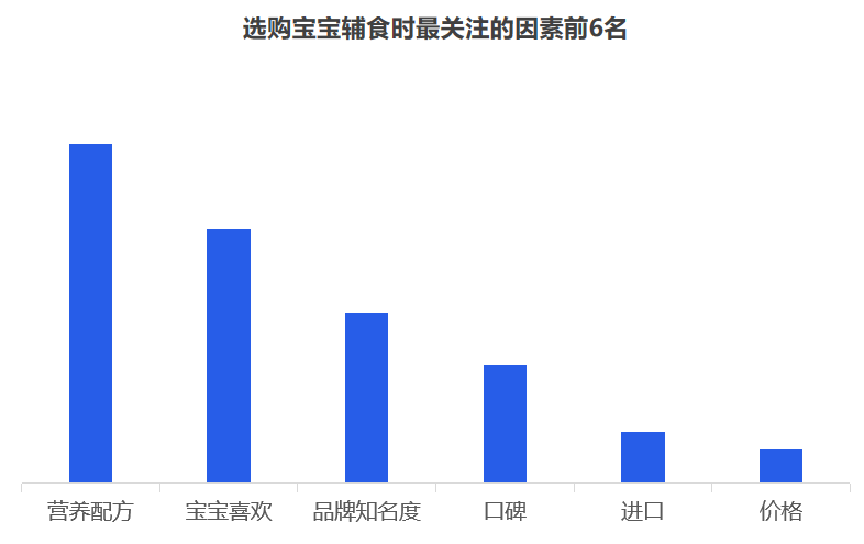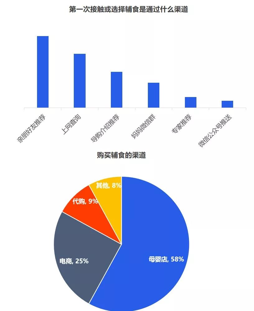 但是對于品牌而言,最重要的是洞察需求,一個(gè)好的洞察,一定是清晰揭示消費(fèi)者的傾向,暗示了一個(gè)市場機(jī)會(huì)。究竟品牌入局輔食的機(jī)會(huì)有多大,媽媽們是如何看待輔食的? 從當(dāng)前的嬰幼兒用品的采購情況來看,媽媽負(fù)責(zé)嬰幼兒用品的采購,用戶占比超七成。奶爸也會(huì)經(jīng)常協(xié)助寶媽,參與到嬰幼兒用品的采購活動(dòng)中,用戶占比為41.7%。 從近一年的百度指數(shù)來看,目前關(guān)注輔食最突出的地域是廣州、浙江、江蘇、山東、北京等,可見,當(dāng)前一二線城市的消費(fèi)者對輔食的認(rèn)知教育有所提高,但是低線城市的消費(fèi)者對寶寶輔食的添加還不重視。 其次,從年齡段來看,“30-39歲”的消費(fèi)人群對輔食的關(guān)注度最高,而在這其中,女性對輔食的關(guān)注度遠(yuǎn)高于男性。 2019年母嬰行業(yè)觀察通過線上調(diào)研近10000人數(shù)的家長進(jìn)行了輔食調(diào)查,其中80后占據(jù)24%,85后占據(jù)26%,90后44%,95后4%,對輔食的態(tài)度如下: 1、幾乎所有的媽媽都認(rèn)為有必要給寶寶添加輔食,并且有一半的媽媽認(rèn)為要在6個(gè)月時(shí)添加,而有32%的媽媽認(rèn)為在6個(gè)月-1歲開始添加,還有16%的人在6個(gè)月以前就添加輔食。 2、大部分寶寶的輔食來源都是“購買與自制”相結(jié)合,而在購買輔食時(shí),媽媽們購買最多的類型依舊是米粉,其次則是餅干、磨牙棒等小食品、營養(yǎng)面等。 3、互聯(lián)網(wǎng)與社交圈對媽媽的購買決策權(quán)的影響力較大,據(jù)調(diào)查顯示,媽媽們第一次接觸或選擇輔食大多都是通過親朋好友推薦,上網(wǎng)查詢等。當(dāng)然消費(fèi)者在購買嬰兒輔食的渠道選擇上,其實(shí)與奶粉并無不同,為了保證產(chǎn)品的質(zhì)量和安全性,同時(shí)也為了可以得到育嬰專家的指導(dǎo)和幫助,消費(fèi)者更傾向于在專業(yè)的母嬰用品連鎖店或主流電商平臺(tái)購買食品。 4、隨著85后、90后新生代父母的崛起,他們與父輩的消費(fèi)觀念并不相同,不再執(zhí)著與于進(jìn)口與價(jià)格等,而是開始關(guān)注是營養(yǎng)配方,重要的是寶寶喜歡。 5、對于寶寶而言,自添加輔食開始,都是與奶粉喂養(yǎng)相結(jié)合,目前超一半的寶寶每天食用輔食的頻率都是一天兩頓。當(dāng)然這在一定程度上也決定了每個(gè)月在寶寶的輔食上的花費(fèi)是多少,從月消費(fèi)來看,可以明顯看出200以內(nèi)的將近半數(shù),當(dāng)然也可以看出花費(fèi)在300以上的有21%,可見,對于嬰兒食品這個(gè)特殊的品類,以及嬰幼兒這個(gè)特殊的消費(fèi)人群,消費(fèi)持續(xù)升級仍然明顯。近兩年來,嬰幼兒輔食高端化、有機(jī)化趨勢明顯。 近幾年來,越來越多的媽媽意識(shí)到輔食的重要性,隨著我國居民可支配的收入不斷提高,消費(fèi)者投入了更多的關(guān)注給自己的孩子,作為寶寶的第二餐,消費(fèi)者愿意投入更多費(fèi)用,使用周期會(huì)不斷變長,且更注重輔食產(chǎn)品的品質(zhì)和質(zhì)量??梢婋S著消費(fèi)水平的提升,年輕父母對于對孩子的飲食質(zhì)量、飲食營養(yǎng)的投入更加重視,會(huì)更追求高附加值、高品質(zhì)的輔食,中國輔食市場會(huì)繼續(xù)高速發(fā)展。